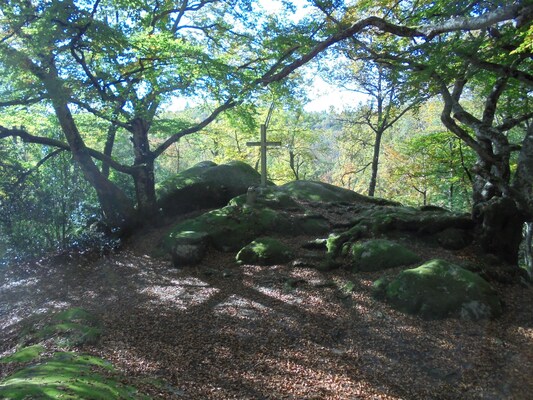 Autre vue de la croix après avoir contourné le rocher qu'elle surplombe.
