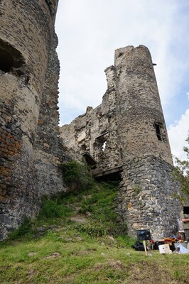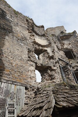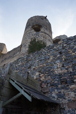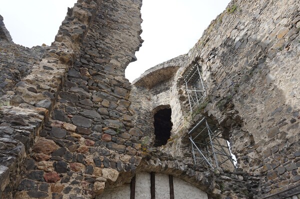 Dans cette tour, quelques voûtes ont partiellement survécu.