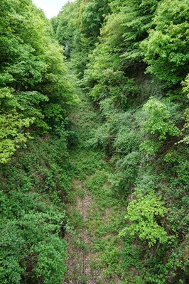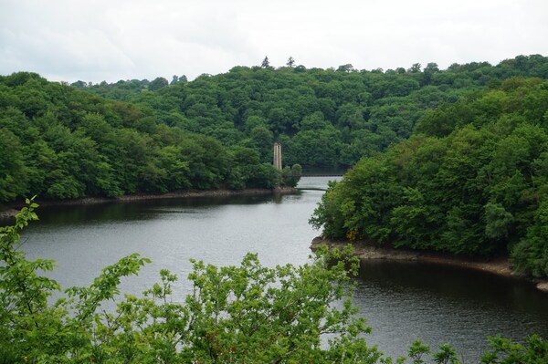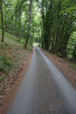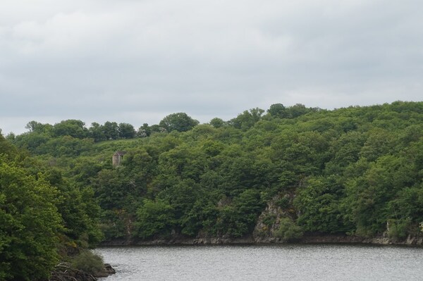 La route remonte après le pont, et me permet d'apercevoir, à travers les arbres,
