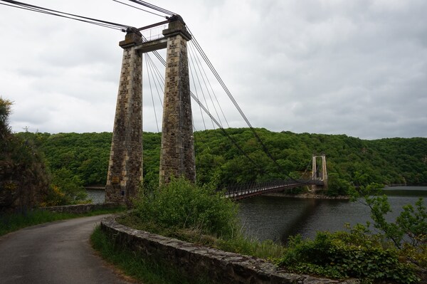 La route du pont suspendu est goudronnée mais étroite. Depuis son bord, je peux