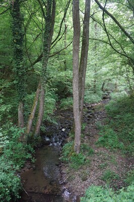 Vue sur l'aval du ruisseau. Je pars vers la droite, pour longer le ruisseau sur