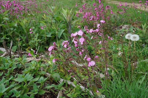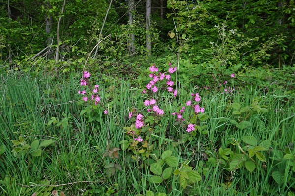 Quelques fleurs roses, sans doute des compagnons rouges. Pourtant, les fleurs