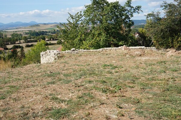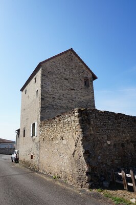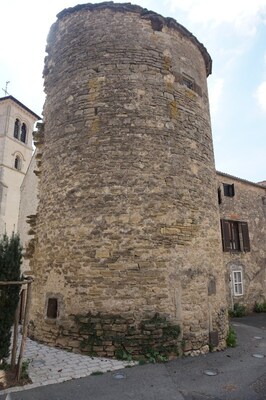 En face de la tour, sur la droite, de vieux murs a priori bien conservés