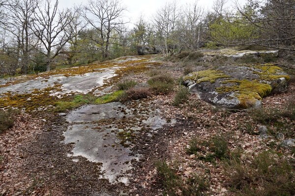 Me voilà sur ce rocher. Vers l'ouest, un gros fragment évoquant un gisant bien
