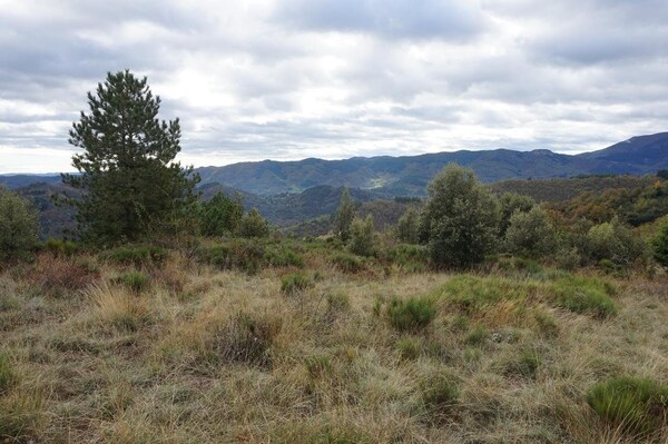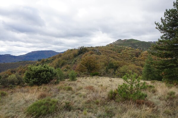 Fenadou caché par l'arbre au centre, le Suc de Bauzon à droite.