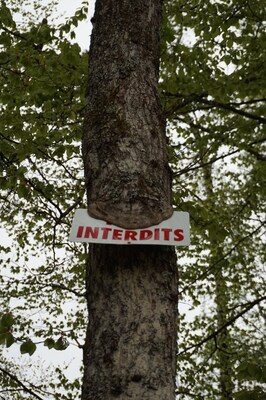 Sur le chemin qui fait le tour du lac du barrage, un panneau d'interdiction. Je