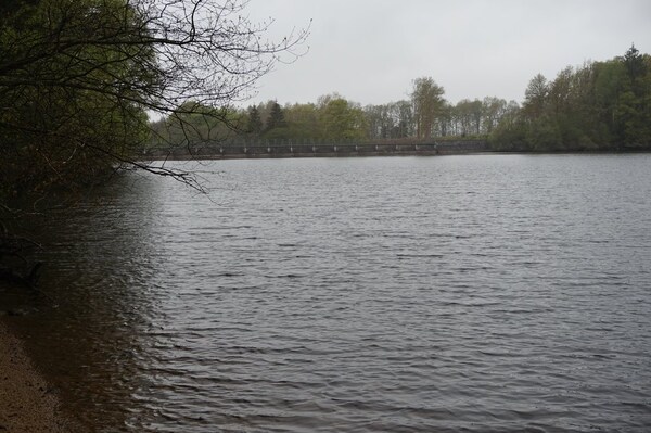 Vue du barrage depuis le tour du lac, un peu plus loin.
