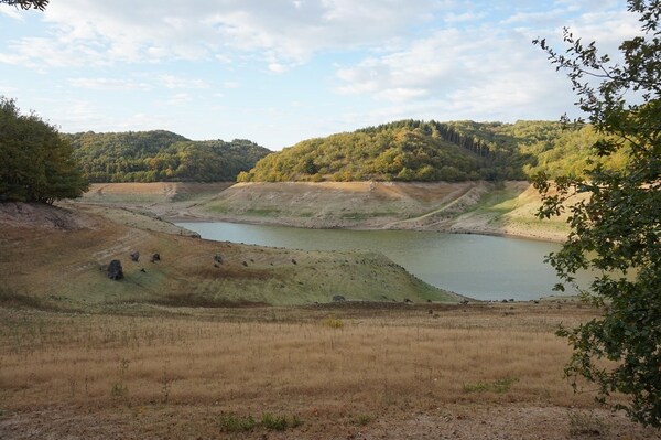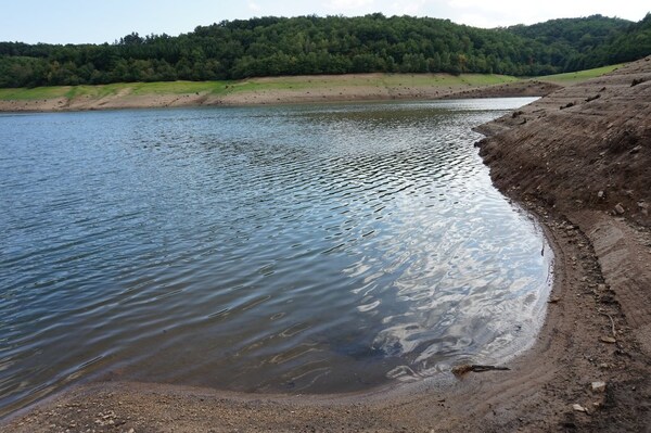 Mi-octobre, sans pluies, la retenue d'eau a été fortement ponctionnée. Le