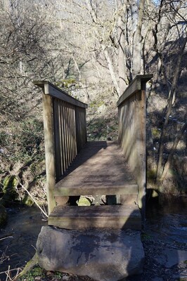 Le chemin franchit l'Ourzie sur un petit pont de bois...