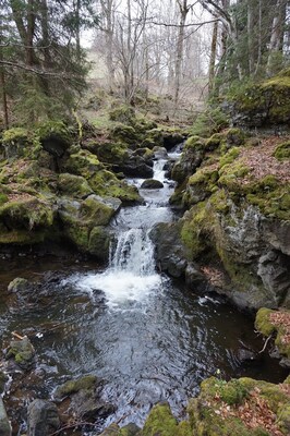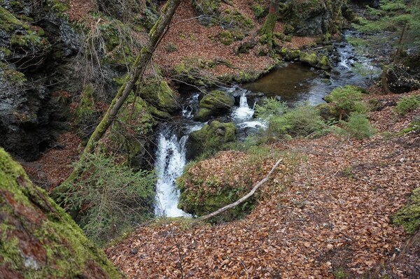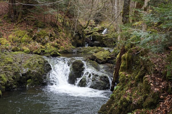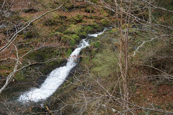 Voici la première grande cascade, partiellement cachée par les rochers la