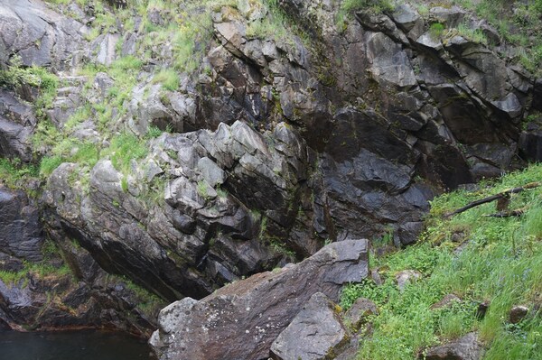 Cette cascatelle se trouve au bord de cette aiguille de granite bien attaquée
