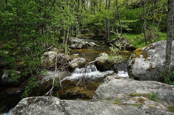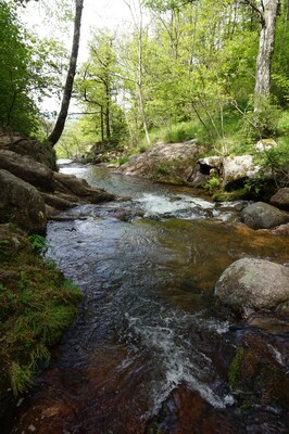 En aval de cette cascatelle, le ruisseau suit un cours un peu plus tranquille