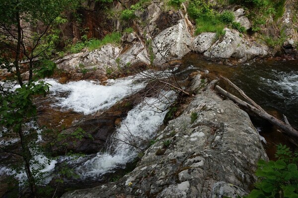 Depuis la roche, les pieds presque dans l'eau, voici la cascatelle en amont, qui