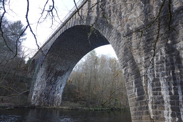 Pour franchir la Rhue, je vais emprunter le pont de chemin de fer. La ligne