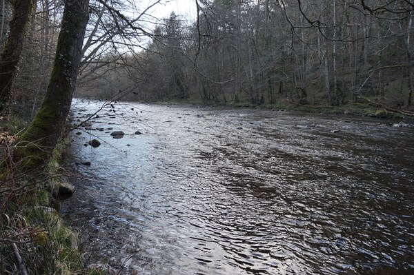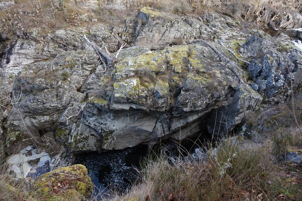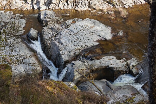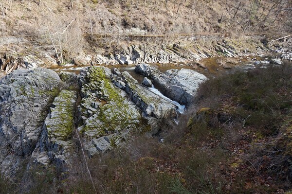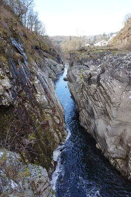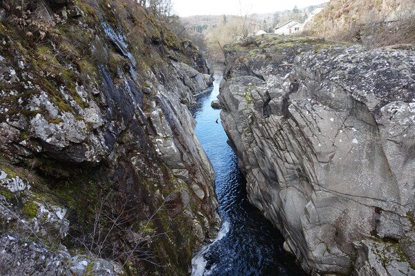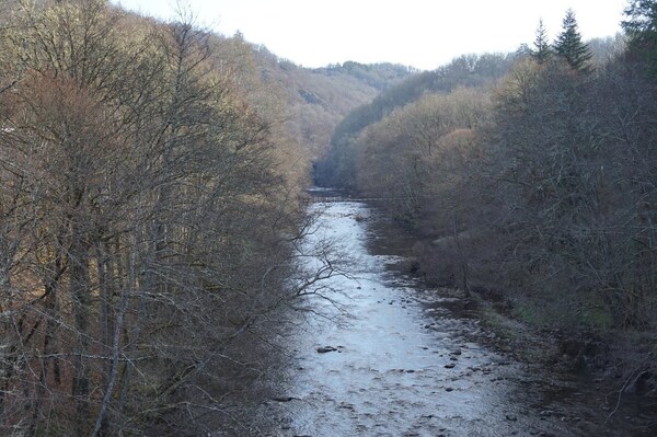 La Rhue se fraye un chemin dans un défilé rocheux assez étroit.