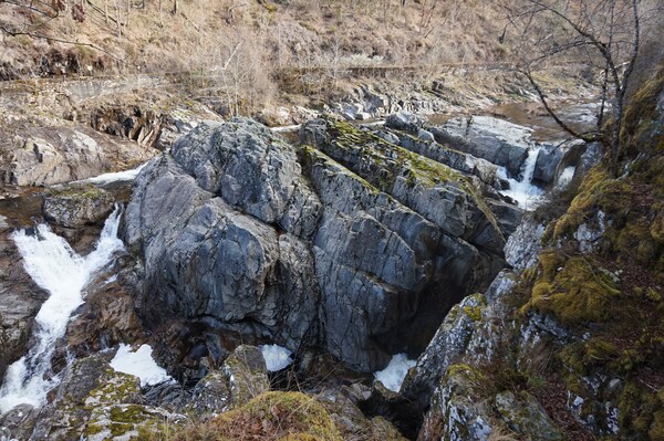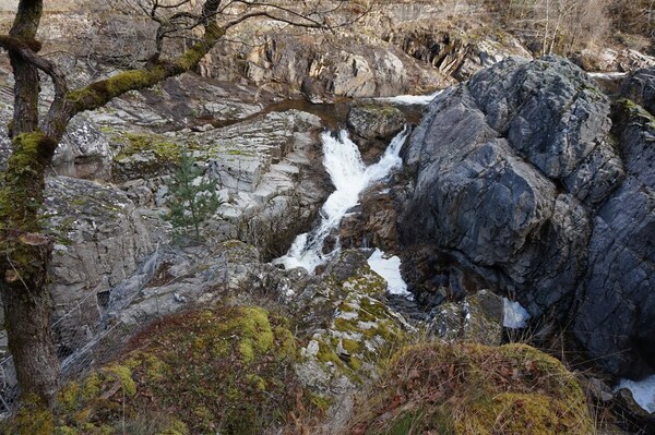 En aval de la cascade, l'étroit canal donne l'impression que la force de l'eau a