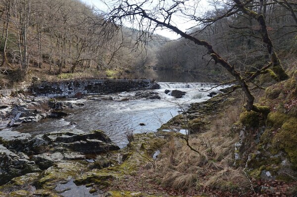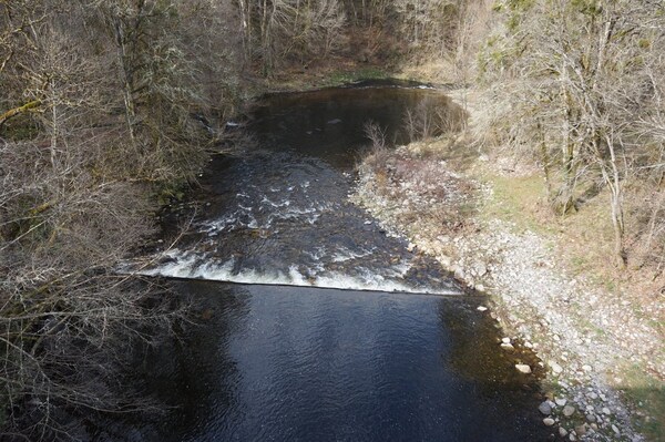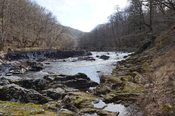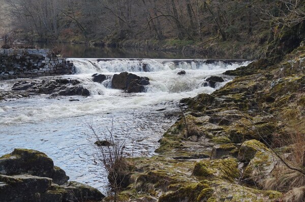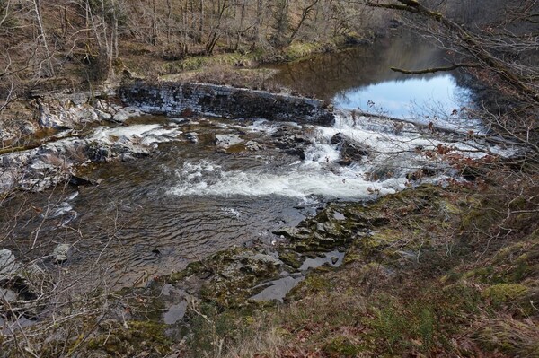 Depuis le bord de la Rhue, vue sur l'ancien barrage.