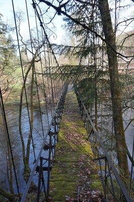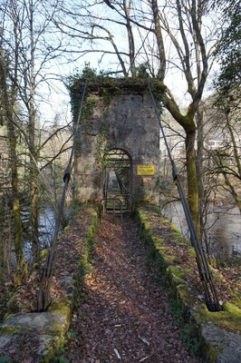 La passerelle vue depuis le bord de la Rhue.