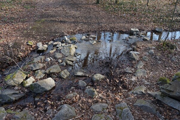 Un ruisseau vient grossir la Rhue.
