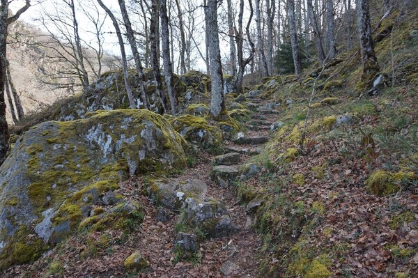 Le chemin traverse en effet une zone rocheuse et s'élève rapidement.