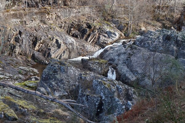 Un peu plus en amont, les restes de l'ancien barrage sur la Rhue.