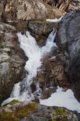 L'amont des cascades est un peu plus calme, les rochers encombrent le lit mais