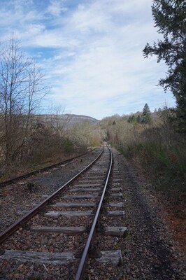 Sur le point de quitter la ligne de chemin de fer pour revenir sur le sentier