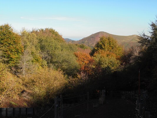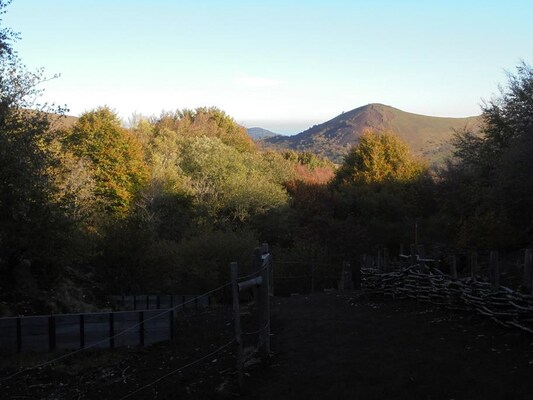 Bientôt au niveau du bois. Une dernière vue du puy de Dôme pour le moment...