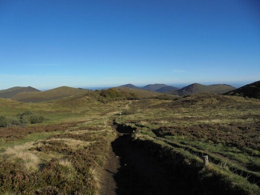 Sorti du bois, je pars à gauche vers le puy de Côme à l'ouest, en longeant les