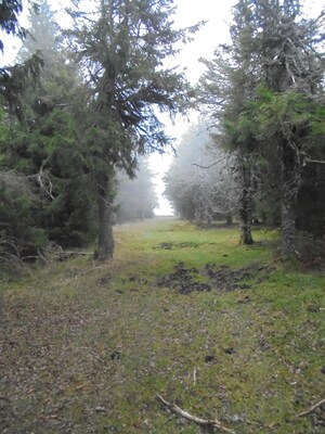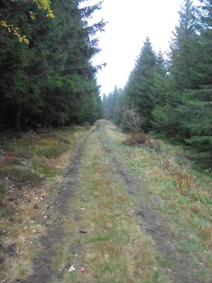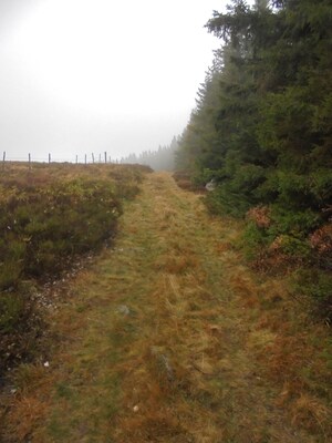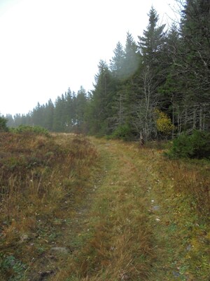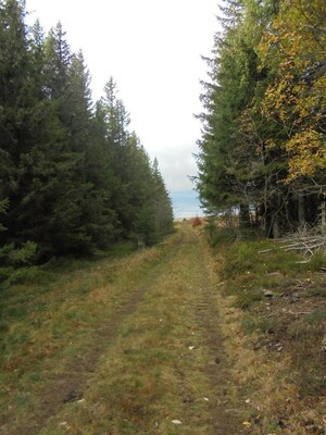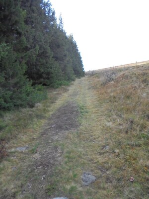 Le chemin continue en pente douce à distance respectable de la forêt. J'attends