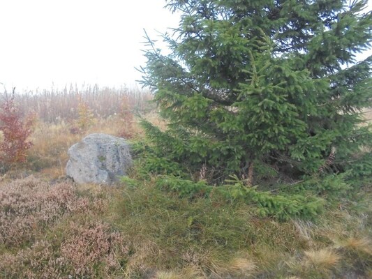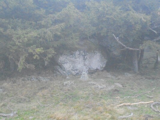 Cette grosse pierre semble s'être réfugiée sous l'arbre.