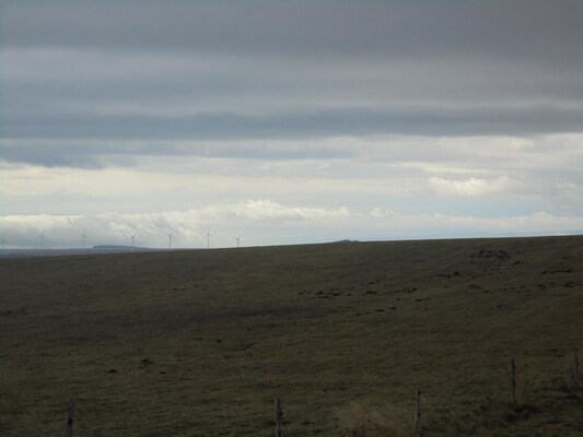 éoliennes en plein travail, dans le lointain.