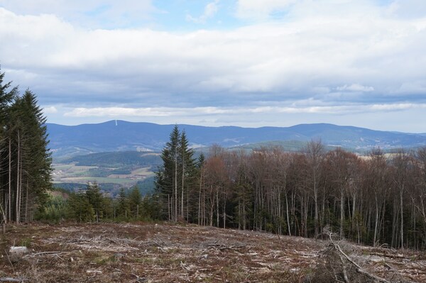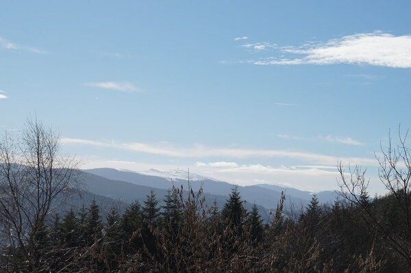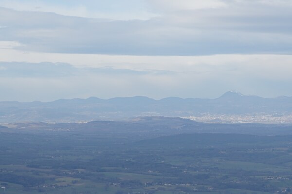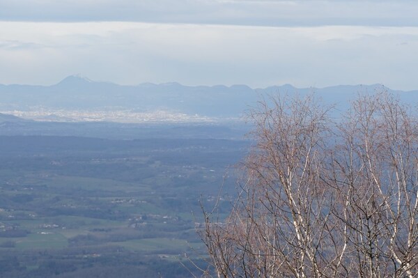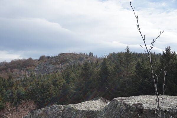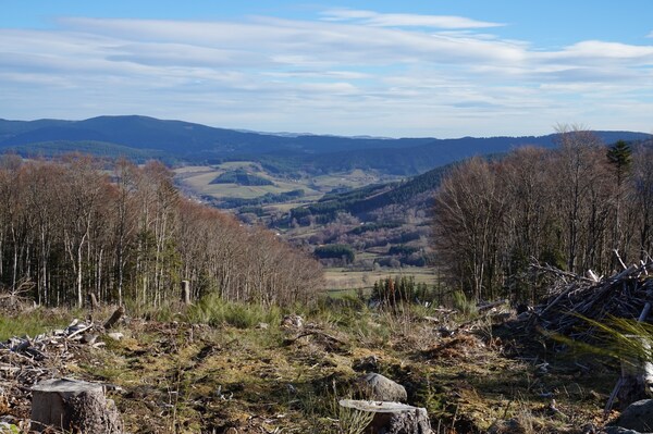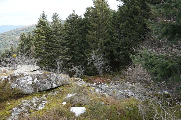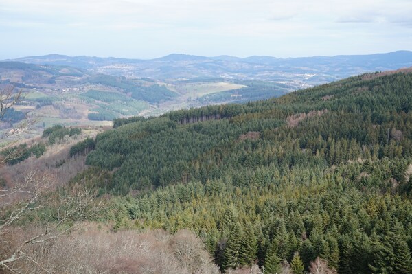 Une trouée vers le nord, nord-est, me permet d'apercevoir les sommets du Forez
