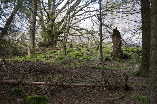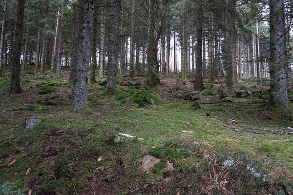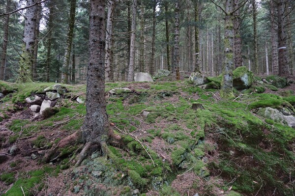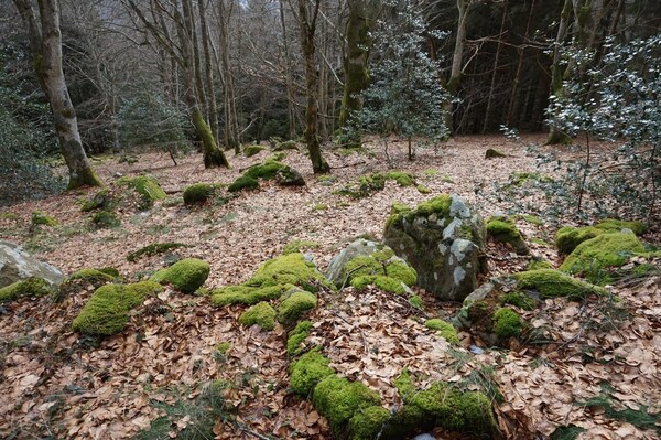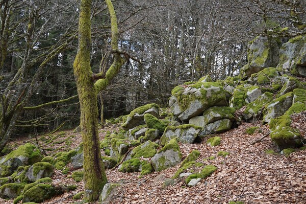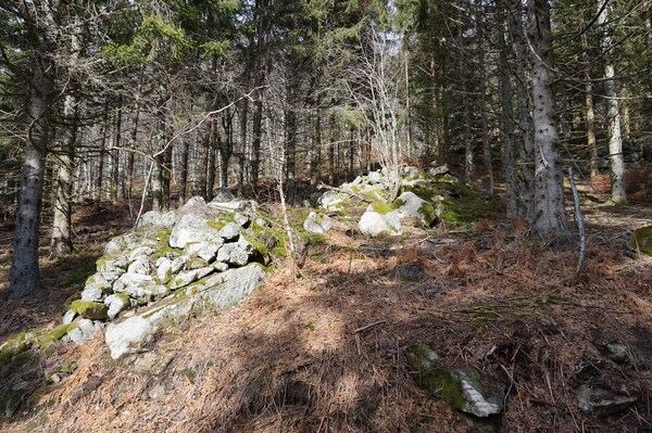 Encore des amas de pierres, au milieu de tous ces arbres nus.
