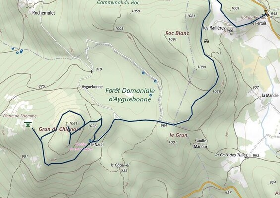 Il est temps de quitter la Pierre de l'Homme et de rejoindre le Grün de