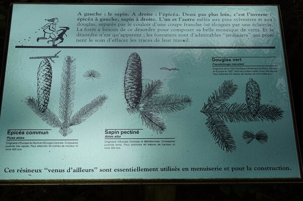 Nouveau panneau, apprenons à reconnaître les conifères. Quel dommage qu'une