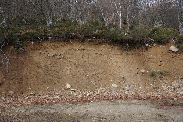 Soudain, des arbres ont leurs racines à l'air. La paroi mesure environ trois