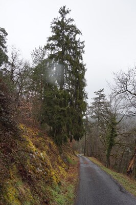 ...tandis que, de l'autre côté, ce sapin domine outrageusement la route et les