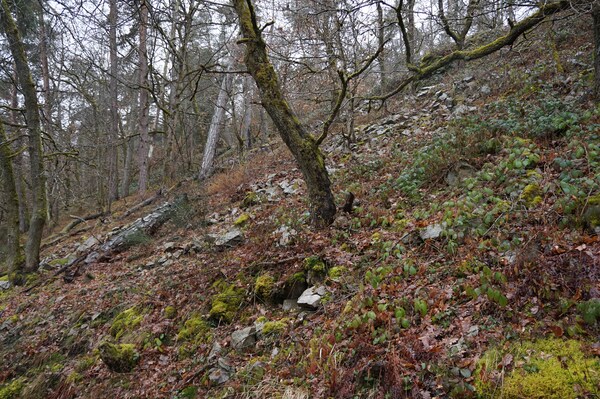 La pente est forte, et l'érosion aussi. Difficile de dire si cet arbre est