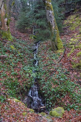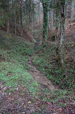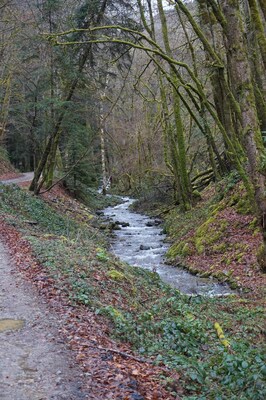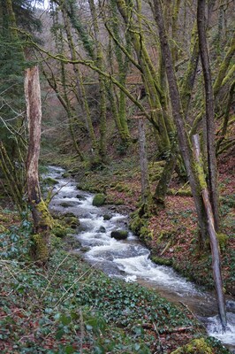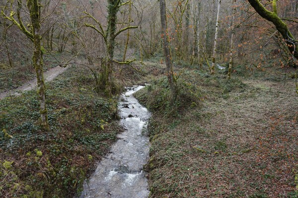 Au travers des troncs, le ruisseau de Queuille...