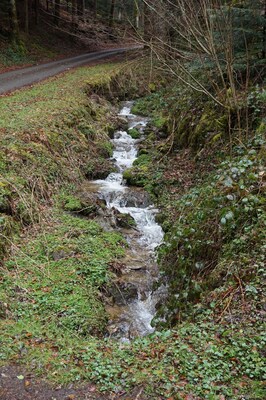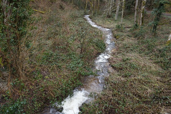 Juste après le pont, le ruisseau se voit renforcé par un autre affluent.