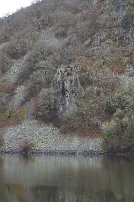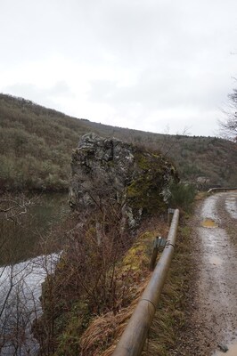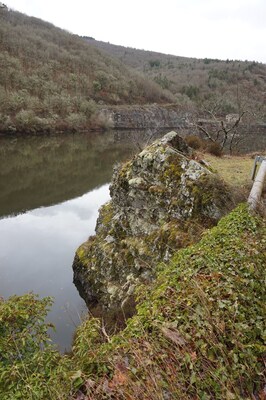 Un dernier rocher, et en arrière-plan, la paroi de l'un des flancs du barrage.