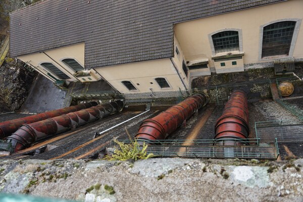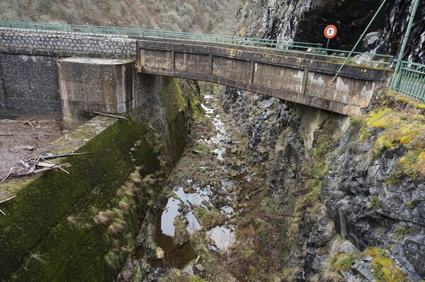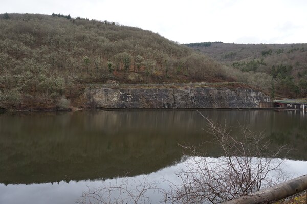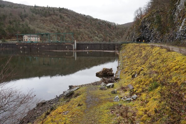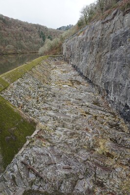 Une meilleure vue sur le flanc du barrage. Il s'agit en fait d'un chenal