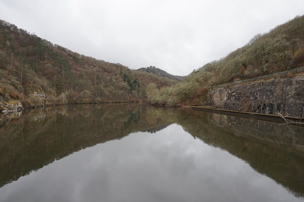 Les arbres le long de la rive sont désormais remplacés par des rochers. Au