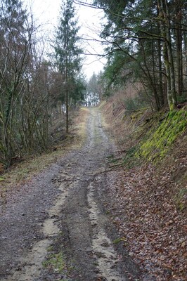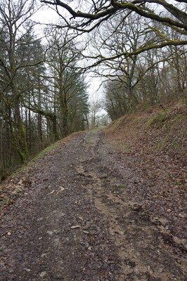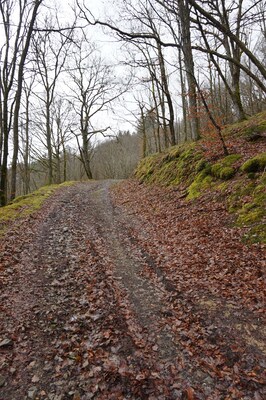 Les bords de la piste sont pentus et boisés...