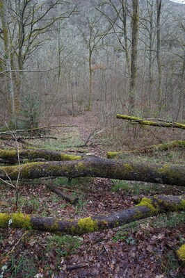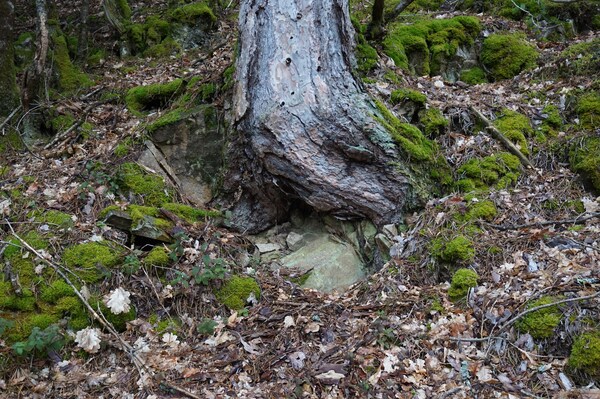 En remontant, je trouve encore un arbre déraciné. Celui-ci semble avoir protégé,