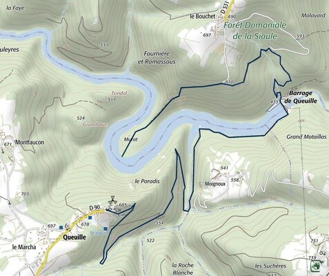 La route du barrage qui descend depuis Queuille est goudronnée sur les trois