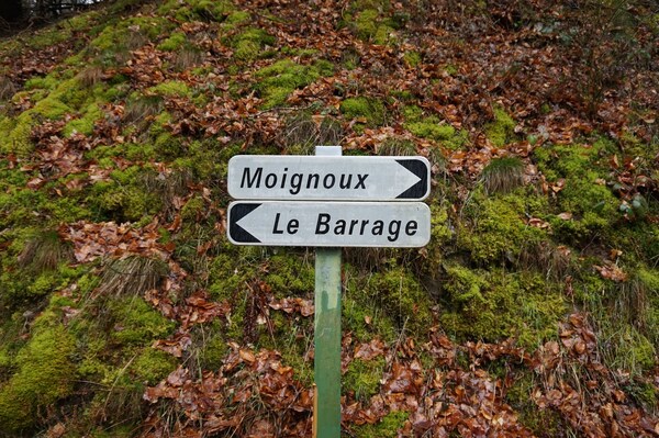La route goudronnée, qui longe cet affluent, part vers le hameau de Moignoux...