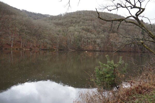 Sur la rive opposée, un arbre a failli tomber jusque dans le ruisseau, mais a