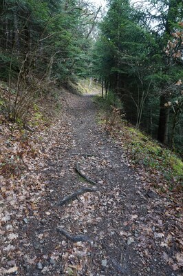 Bien que le but de ce sentier soit de revenir vers la rivière, celui-ci monte.